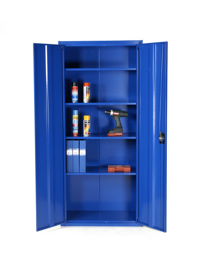Praktisk og stabilt skap med 4 hyller til bruk på kontor, arkiv, lager og verksted etc.